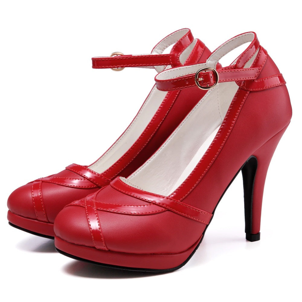 Retro Black and White Ankle Strappy Buckle Dress High Heels